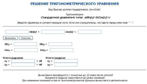 Приведен калькулятор для решения простейшего тригонометрического уравнения типа aSin(x)+bCos(x)=c >>